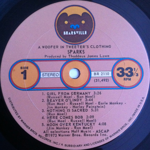 Side 1: 1. Girl From Germany 2. Beaver O'Lindy 3. Nothing Is Sacred 4. Here Comes Bob 5. Moon Over Kentucky