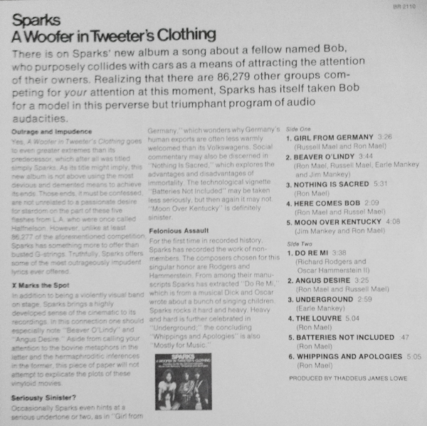 Side 2: 1. Do-Re-Mi 2. Angus Desire 3. Underground 4. The Louvre 5. Batteries Not Included 6. Whippings And Apologies |