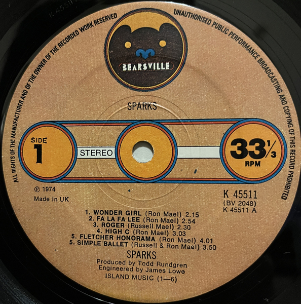 Format: L.P. Year: 1974 Country: U.K. Label: Bearsville Catalogue Number: K45511 Additional: Bold font on label