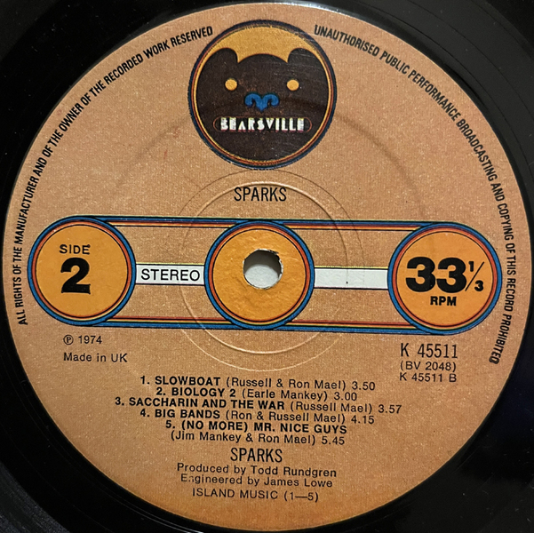 Format: L.P. Year: 1974 Country: U.S. Label: Bearsville Catalogue Number: BV 2048 Additional: Stickered import giving U.K. catalogue number "K45511"