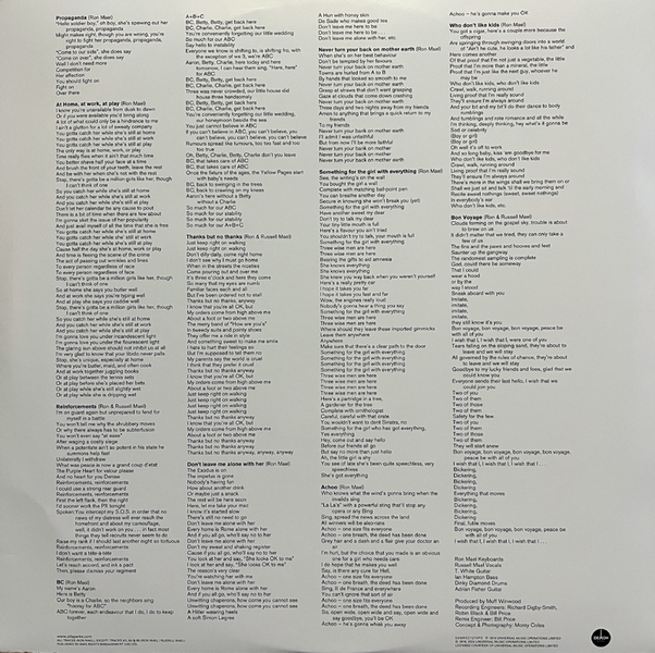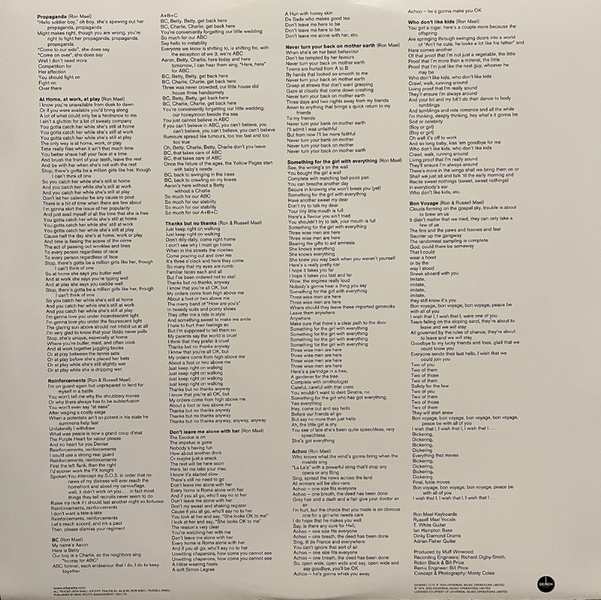 1. Propaganda 2. At Home, At Work, At Play 3. Reinforcements 4. B.C. 5. Thanks But No Thanks 6. Don't Leave Me Alone With Her 7. Never Turn Your Back On Mother Earth 8. Something For The Girl With Everything 9. Achoo 10. Who Don't Like Kids 11. Bon Voyage |