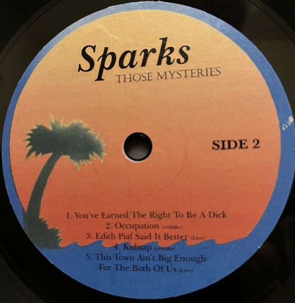 LP 2: The Rest Of Sparks Side 1: 1. Lost And Found 2. Barbecutie 3. Alabamy Right 4. Marry Me 5. Profile 6. The Wedding Of Jacqueline Kennedy To Russell Mael