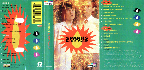 The Best Of Sparks Side 1: 1. This Town Ain't Big Enough For Both Of Us 2. Hasta Manana Monsieur 3. Tearing The Place Apart 4. At Home, At Work, At Play 5. Never Turn Your Back On Mother Earth 6. Get In The Swing