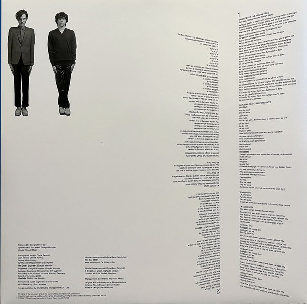 "Sparks - No.1 In Heaven" Side 1 1. Tryouts For The Human Race 2. Academy Award Performance 3. La Dolce Vita